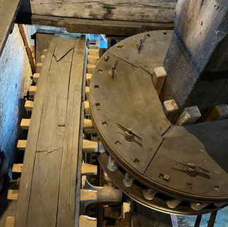 After the outdoor demonstration, we got to head inside the windmill. It's incredible to think about a miller who, when these were first built, had to keep that windmill running night and day through all the weather this area receives - or risk flood. The amount of effort is astounding if you had to do this full time.