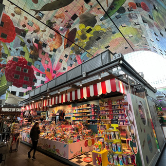 After exploring the Cube Houses and going to a little gift shop to grab a couple of post cards, we headed to Markethaal which is an indoor shopping complex with a giant international food court on the main level. We enjoyed strolling through and looking at all the booths. This reminded me a bit of City Market in Indianapolis as well as the Reading Terminal Market in Philadelphia.